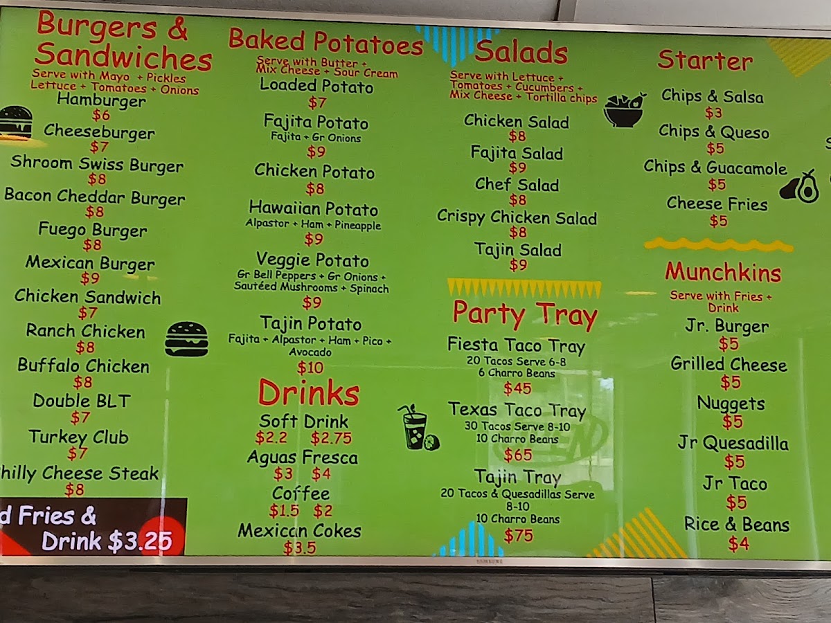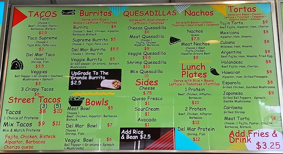 Fajita, chorizo, refried beans, rice, pico de gallo, and avocado. Served with your choice of onions and cilantro or lettuce and tomato.