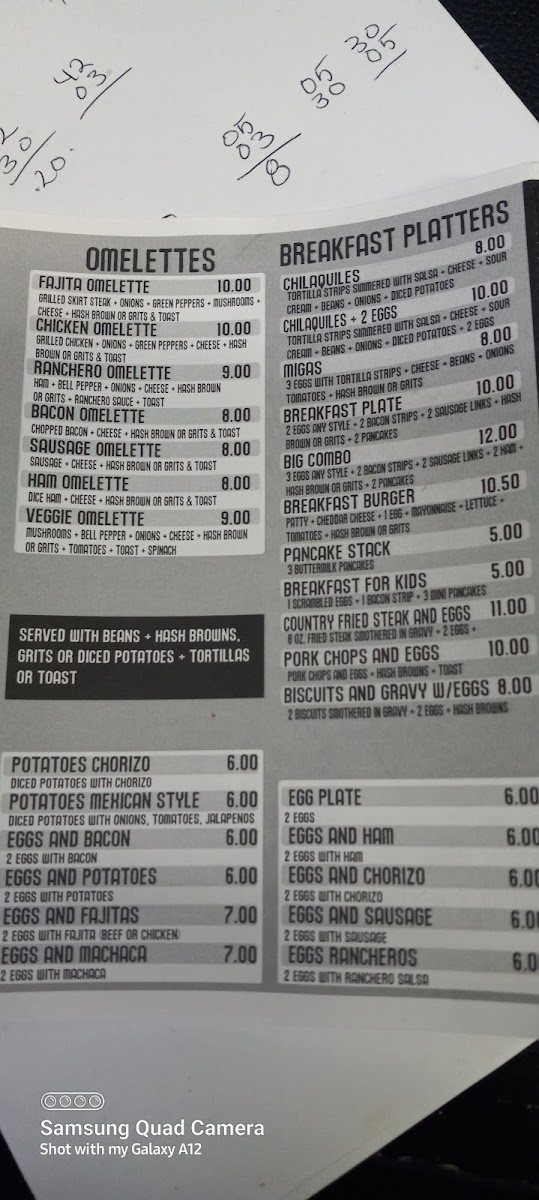 Ham, bell peppers, onions, cheese, ranchero sauce, bread, and your choice of one side.